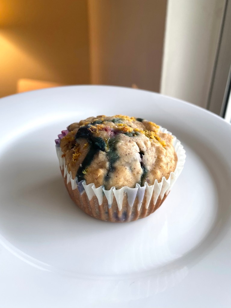 (This particular batch below are blueberry oatmeal muffins with a little lemon zest sprinkled on top)