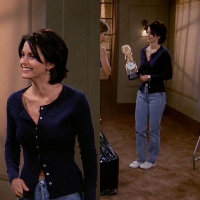 Shows like Friends from the 90s depicted cardigans being worn cropped with a miniskirt or high waisted jeans and they were shown being worn oversized with dresses or jeans for a more casual, slouchy look. Today, celebrities are often photographed in a simple outfit inspired by these 90s looks with a cropped cardigan, often buttoned up as a shirt, and a pair of highwaisted jeans. Kendall Jenner and Bella Hadid are two celebrities to be named who have been pictured wearing this trend quite often.