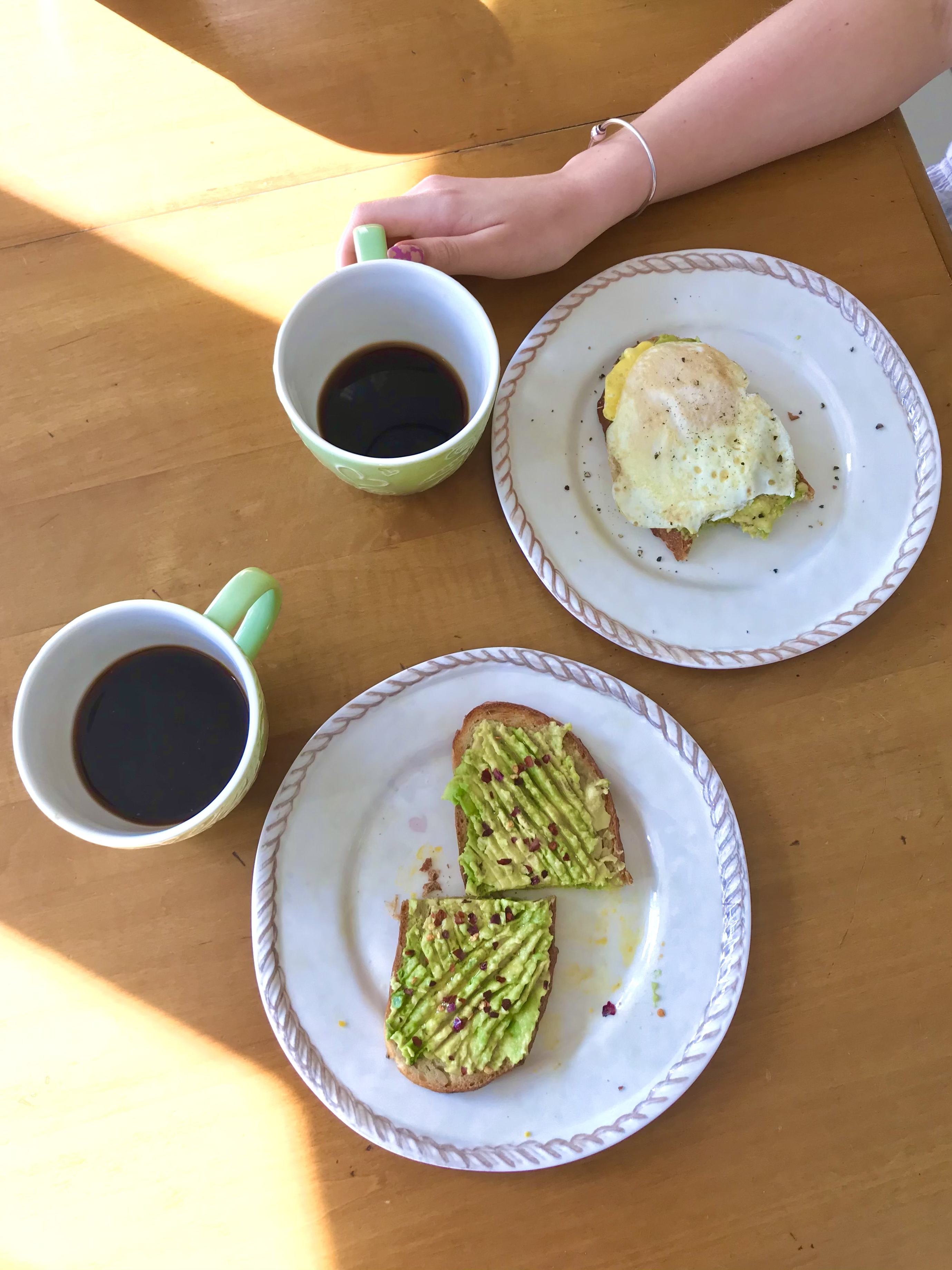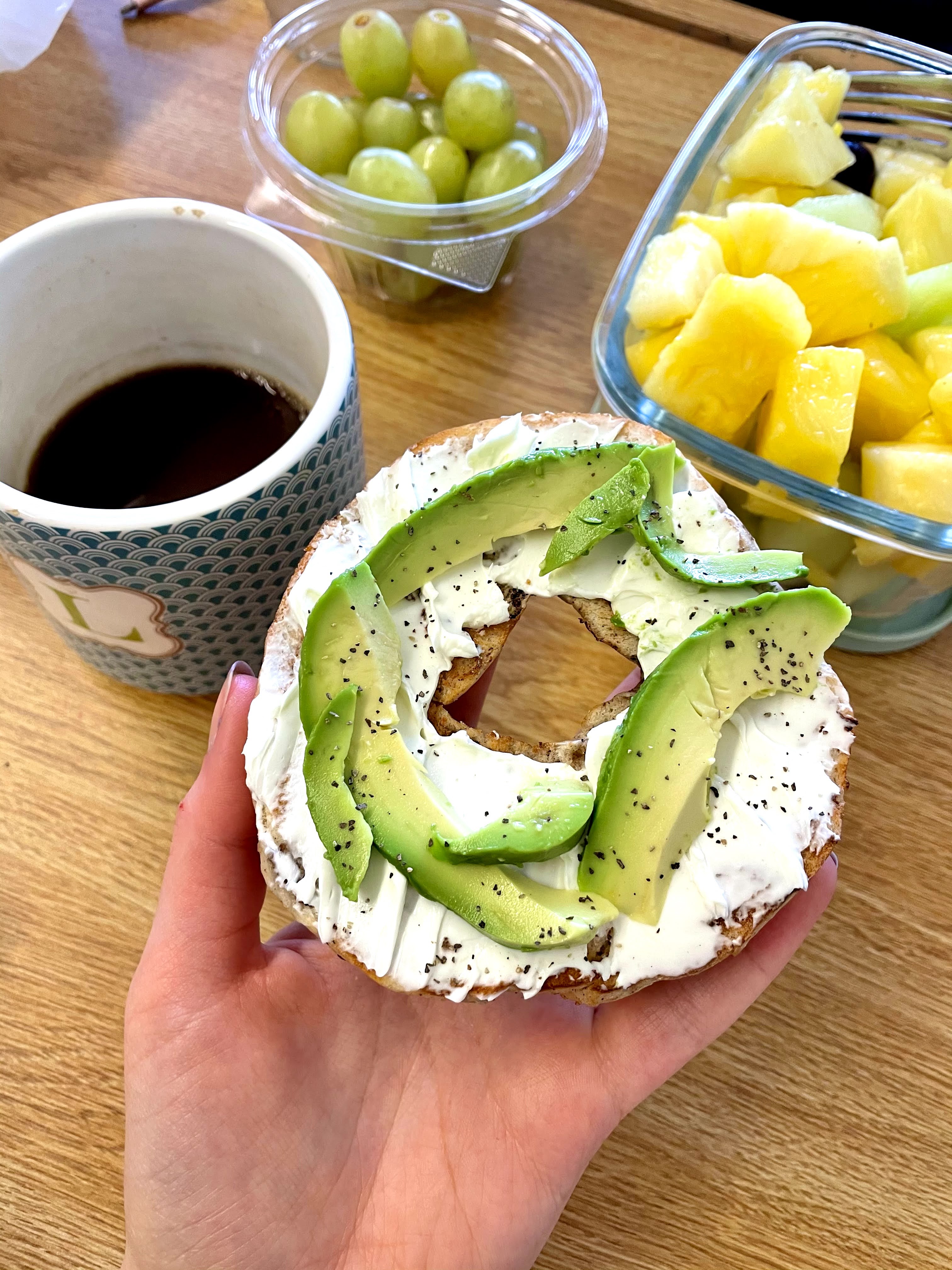 When i have the opportunity to venture away from my regular oats, my other favorite picks include avocado toast and eggs, breakfast sandwiches, bagels, or açaí bowls.