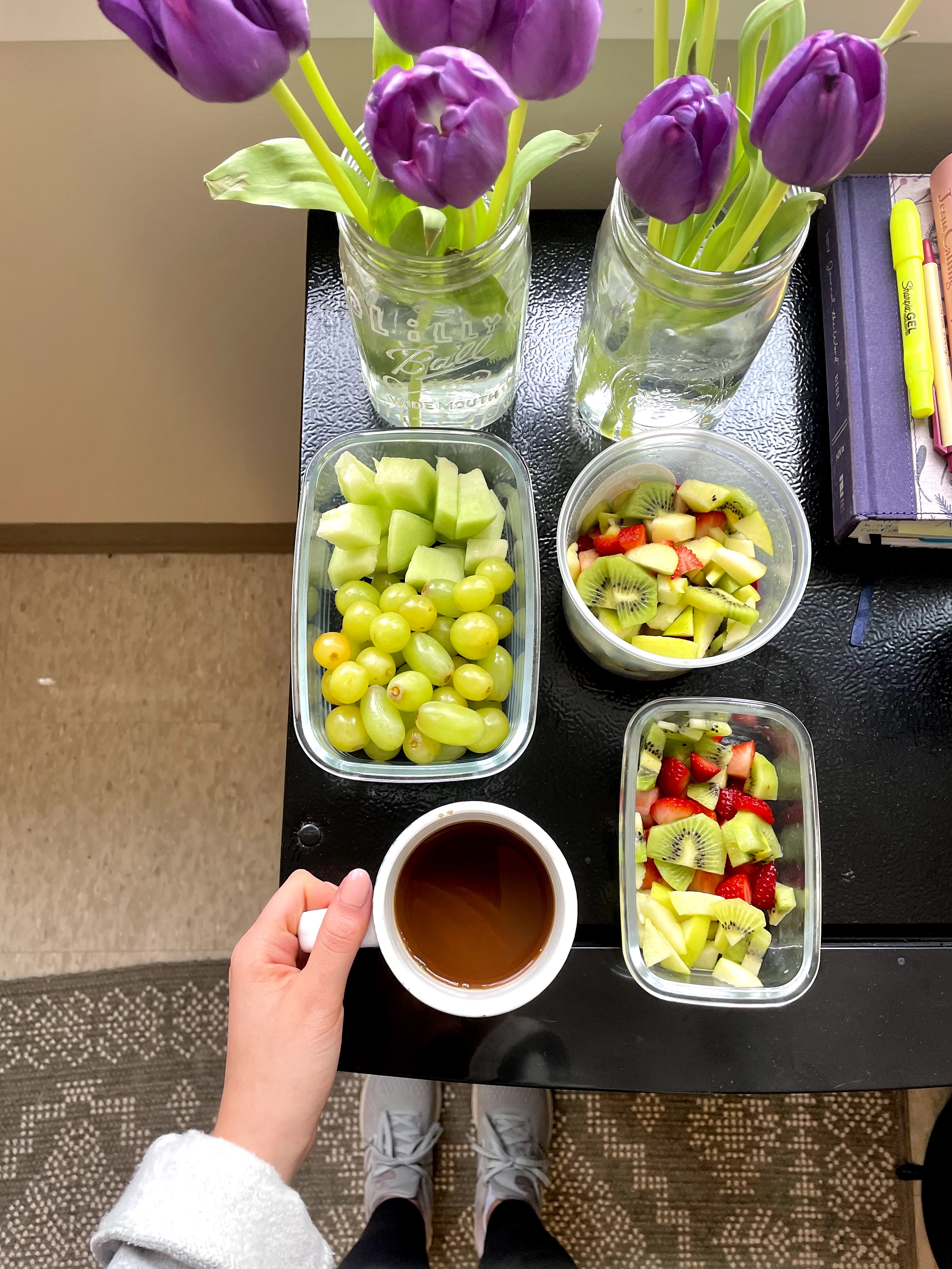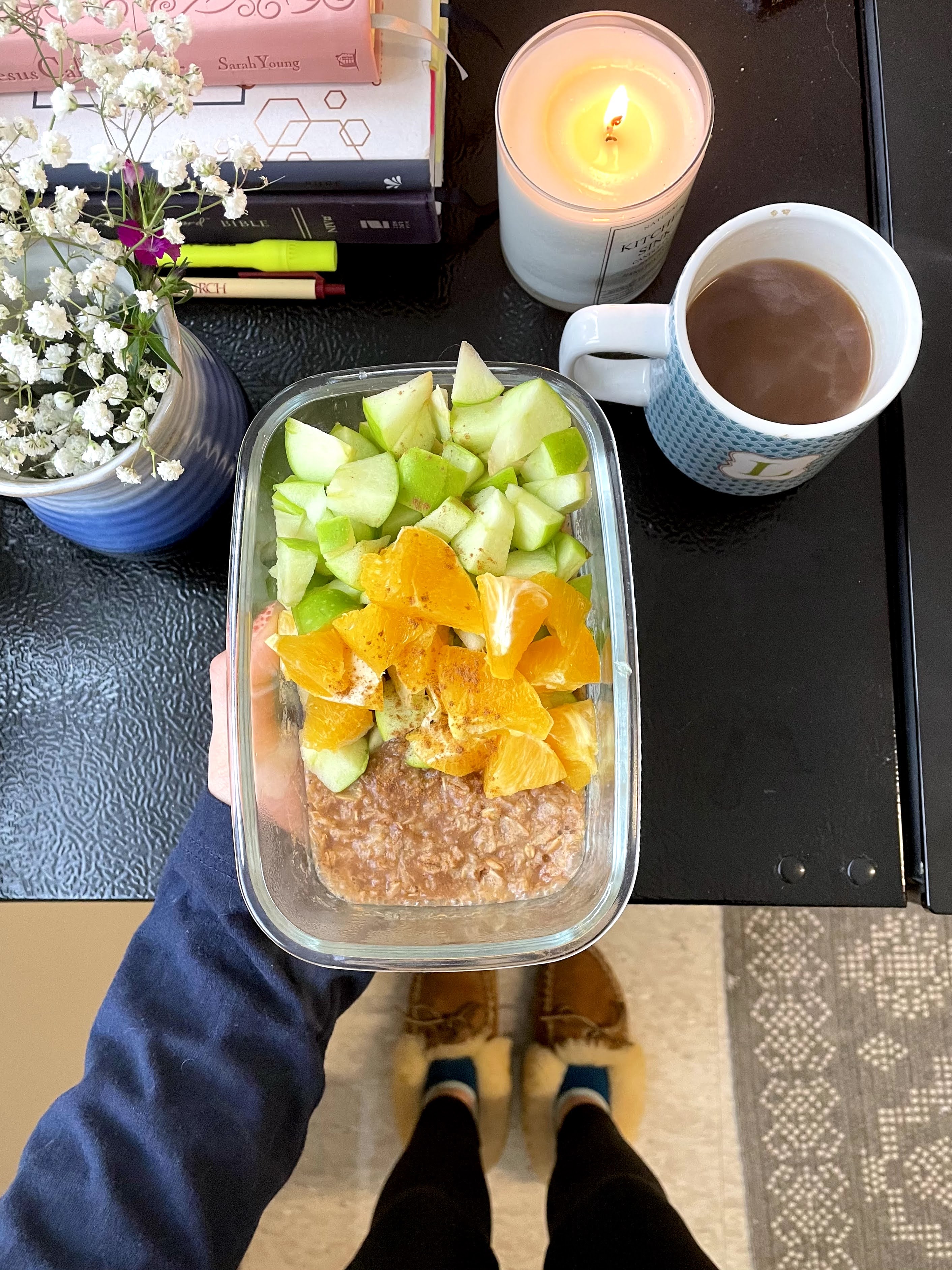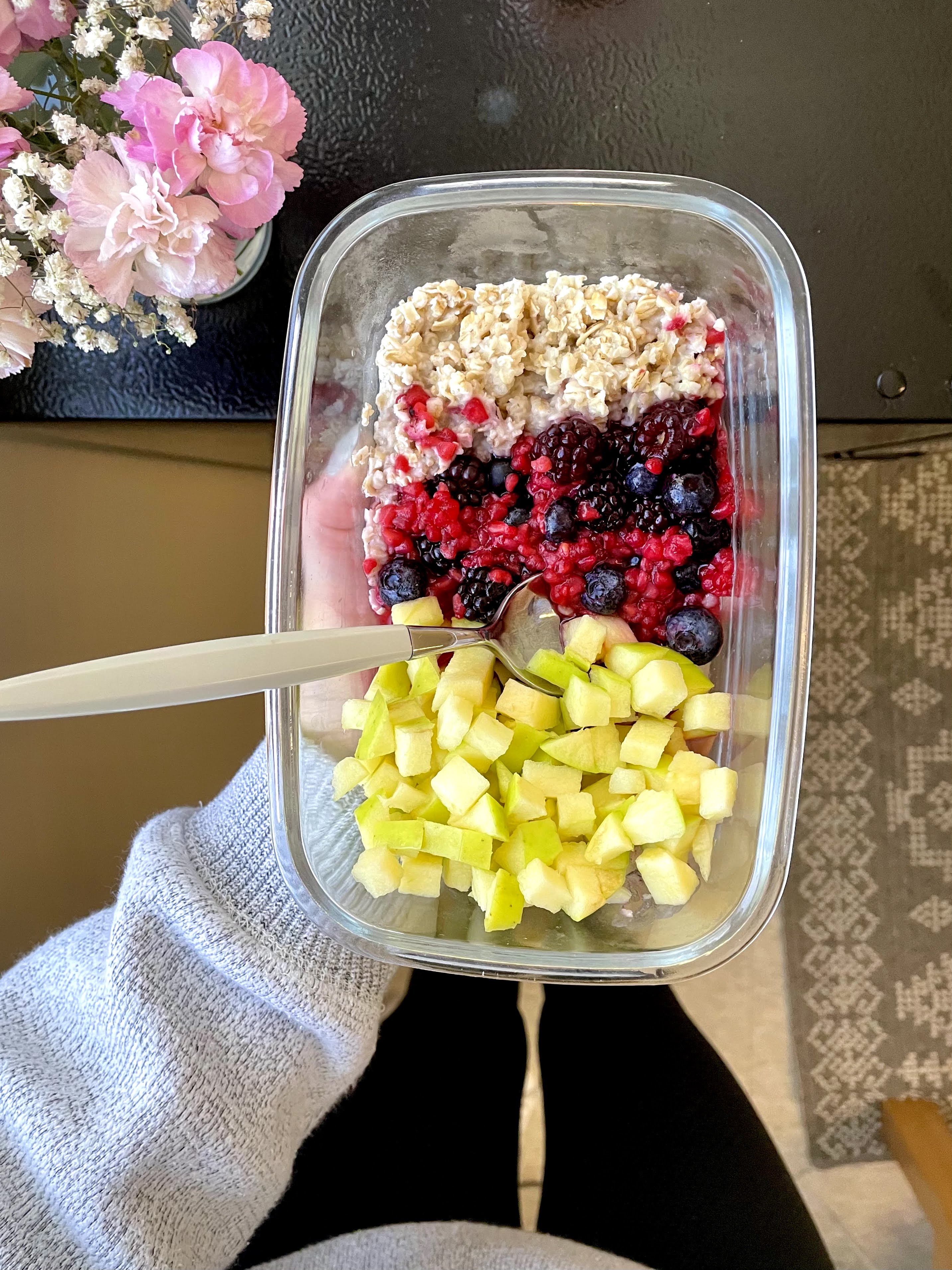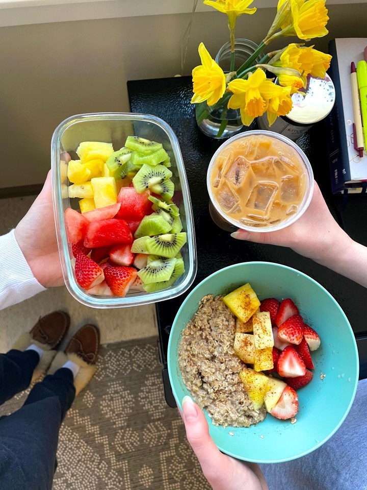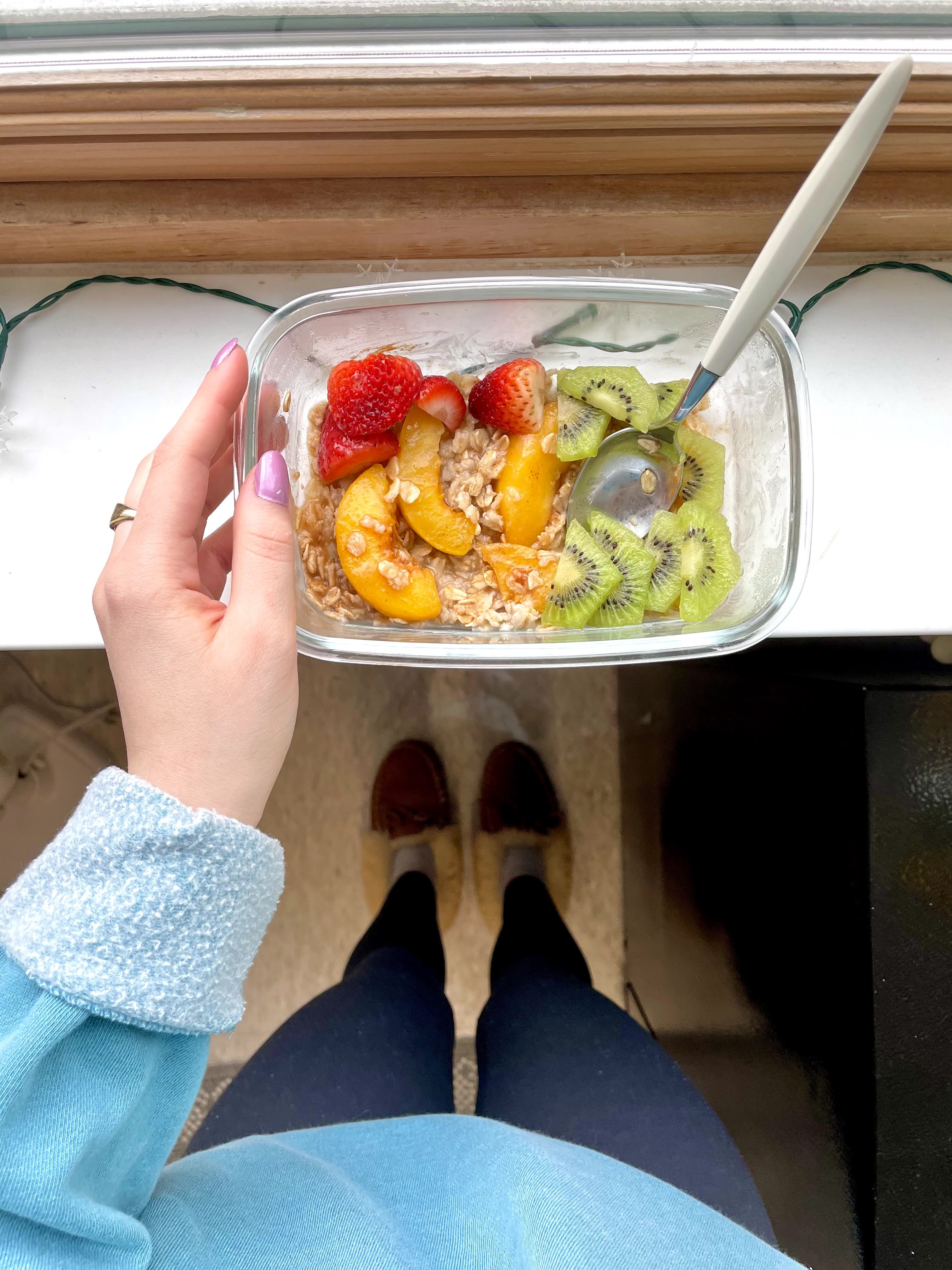 Oatmeal and fruit have been a go-to for my breakfasts for a few months now because of how easy it is to make in my dorm room at school.