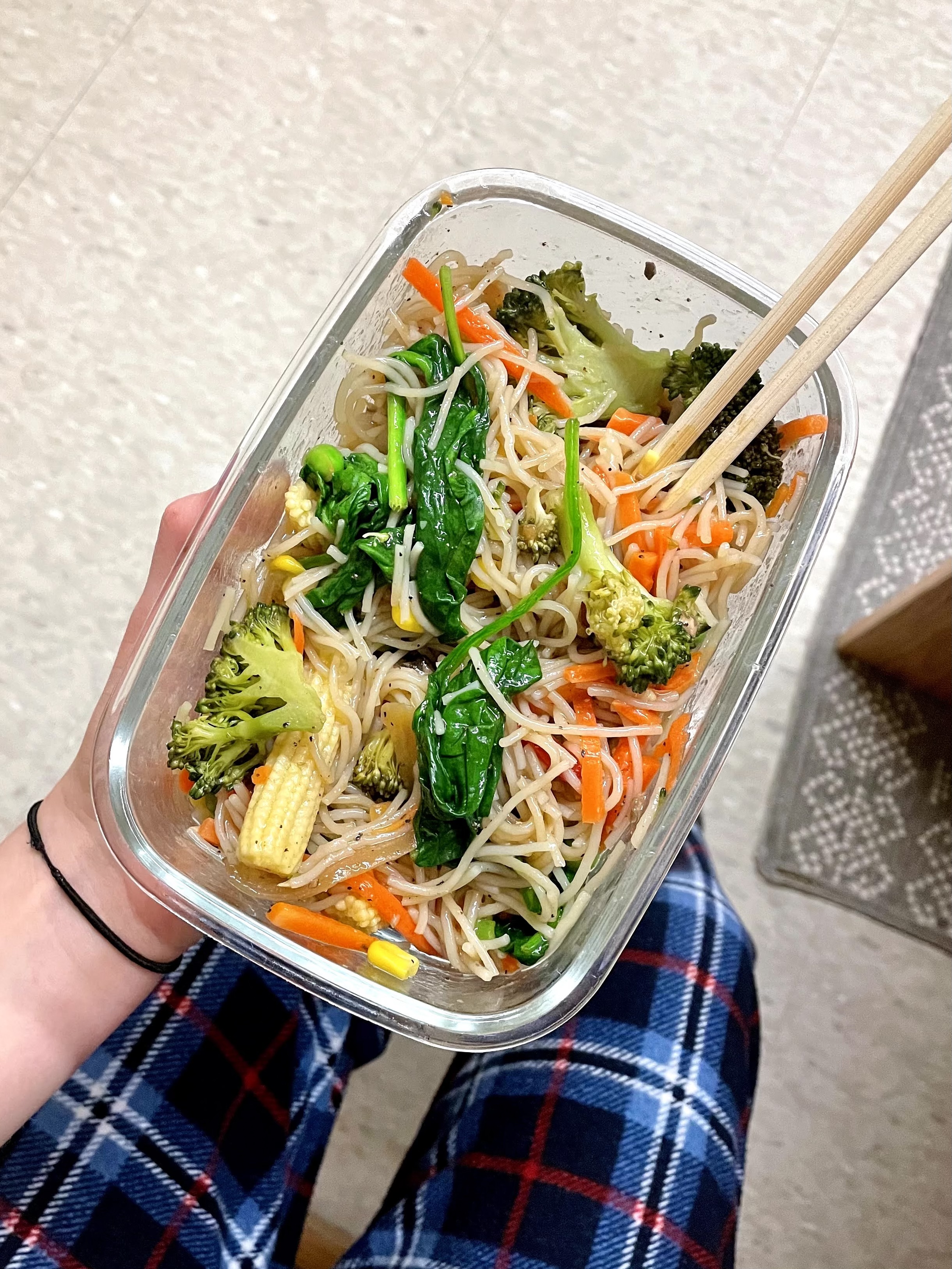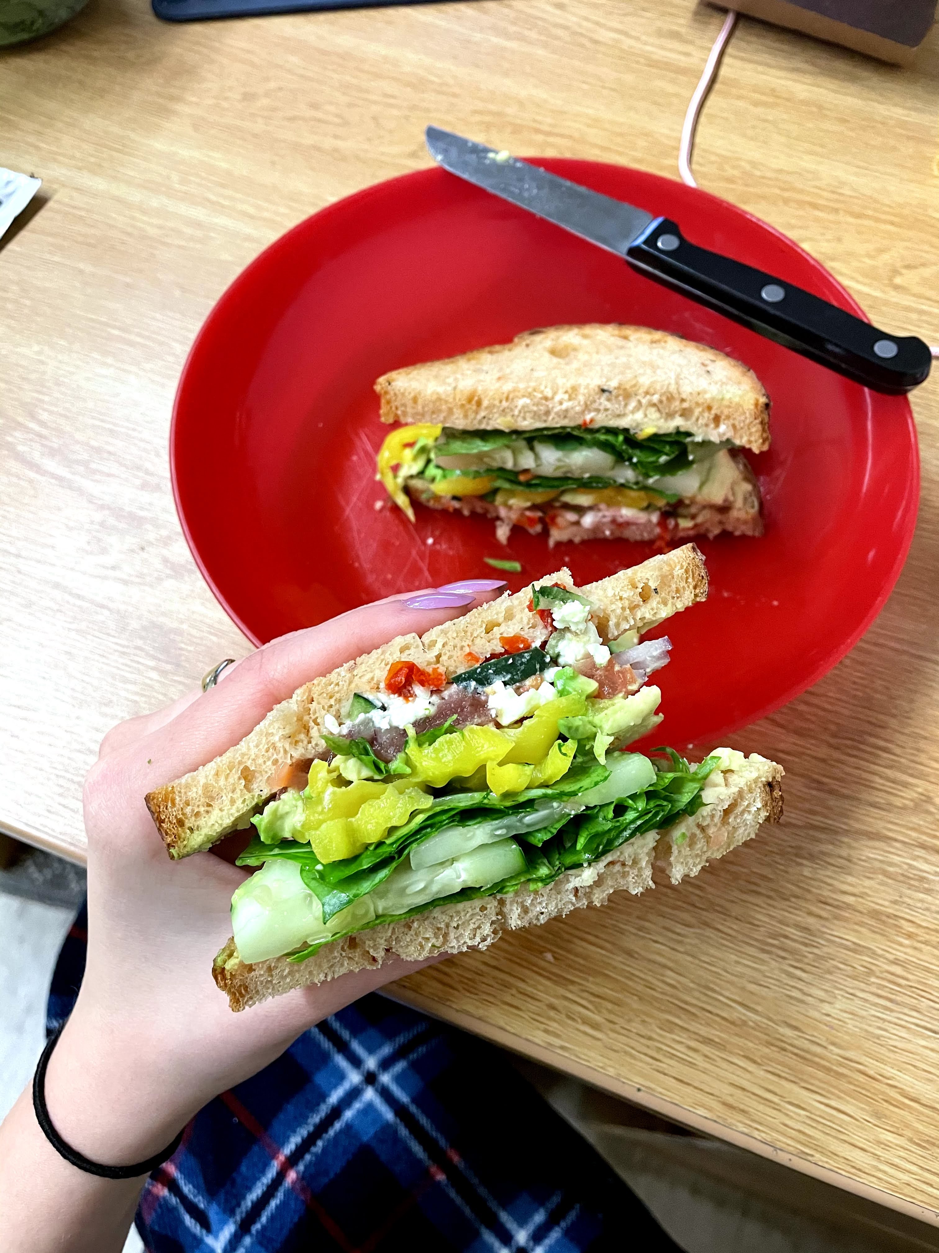 Some favorites of mine for lunch or dinner include a veggie sandwich on toasted wheat bread, avocado toast with salad+veggies, stir fry noodles with every kind of veggie thrown in, spinach veggie wrap, and big salads filled with colorful veggies.