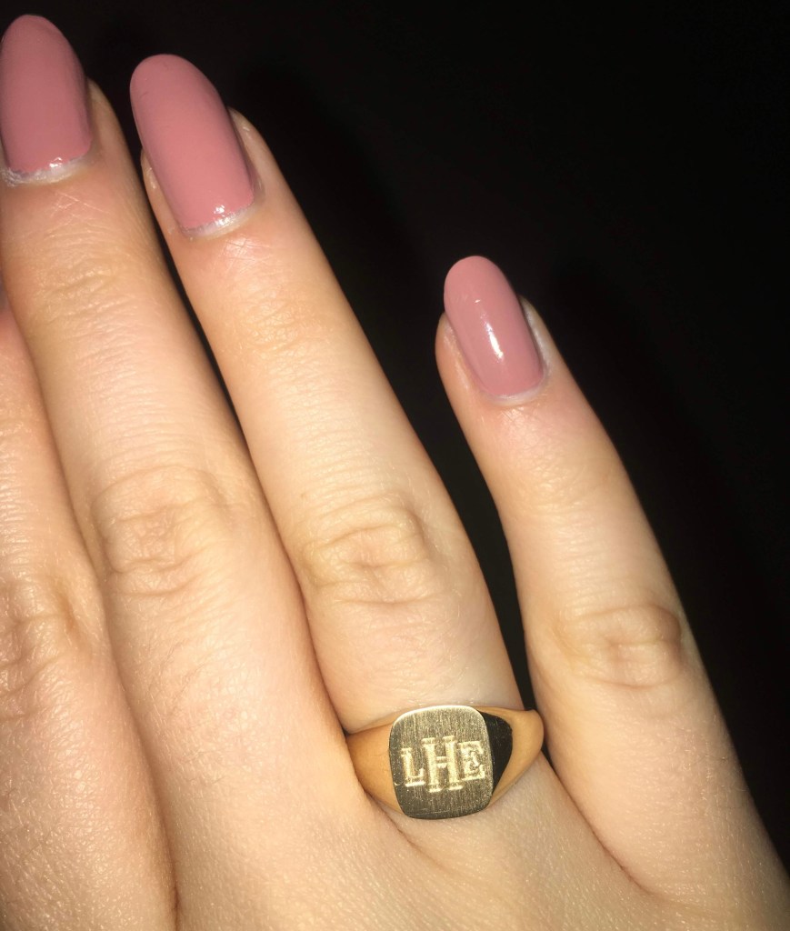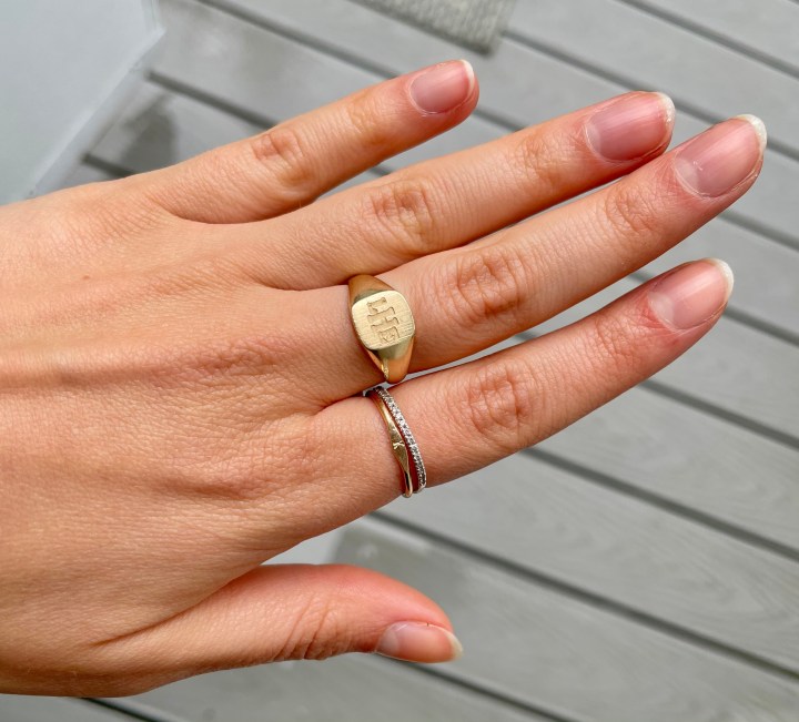 HERE is a link to a very similar signet ring to mine. It’s not exact but it has the same petite square shape with the option to customize your initials on it
