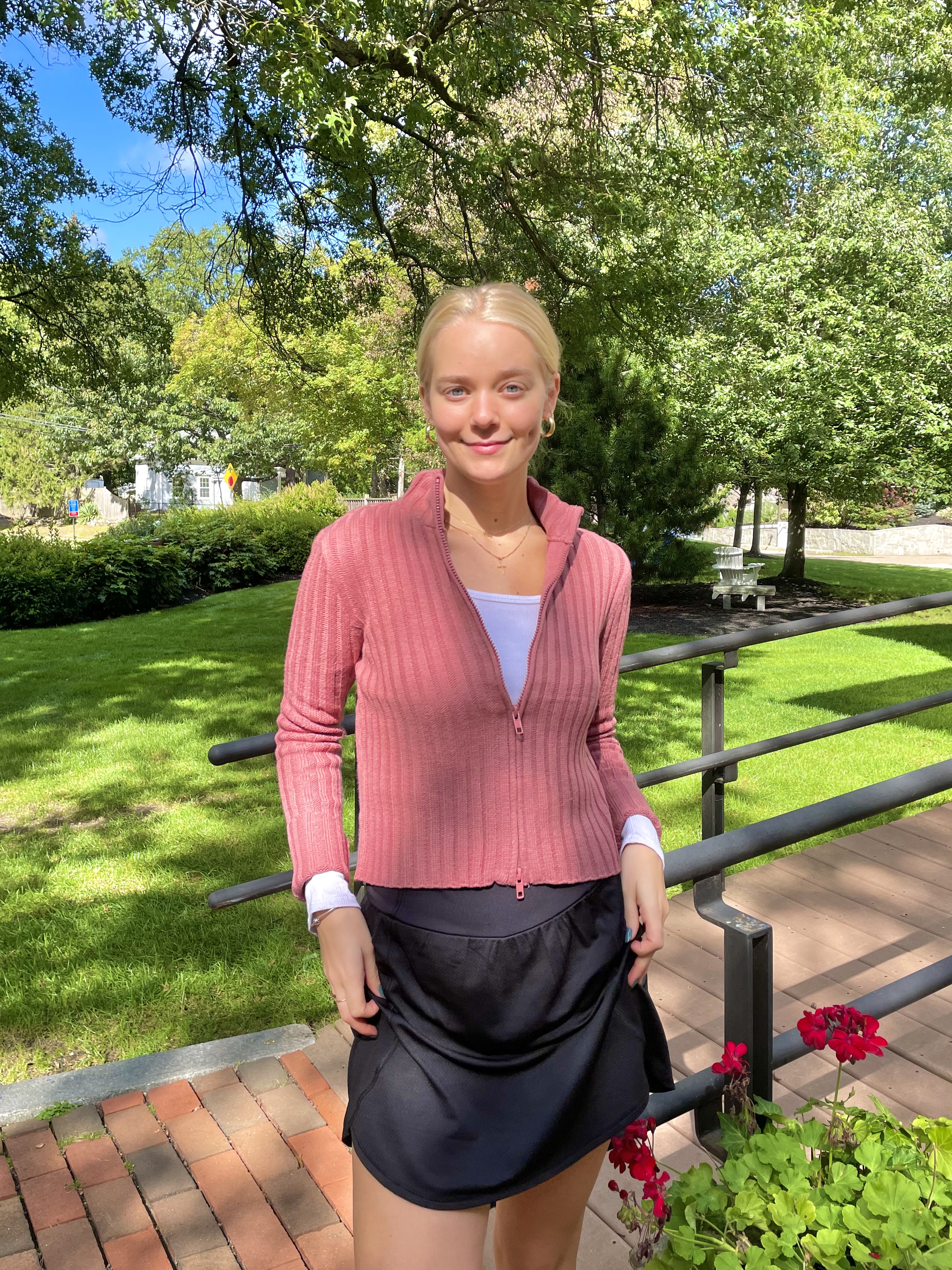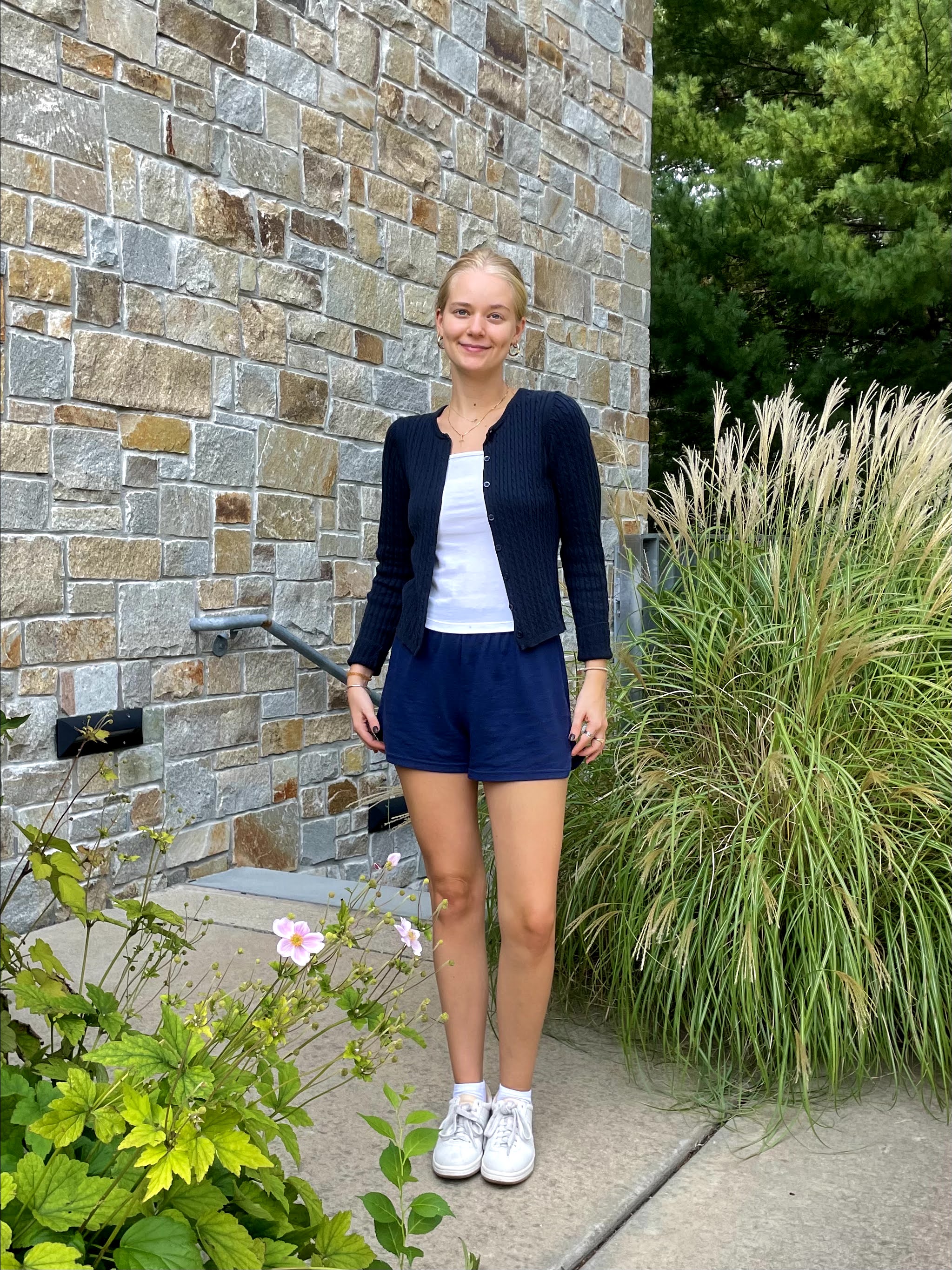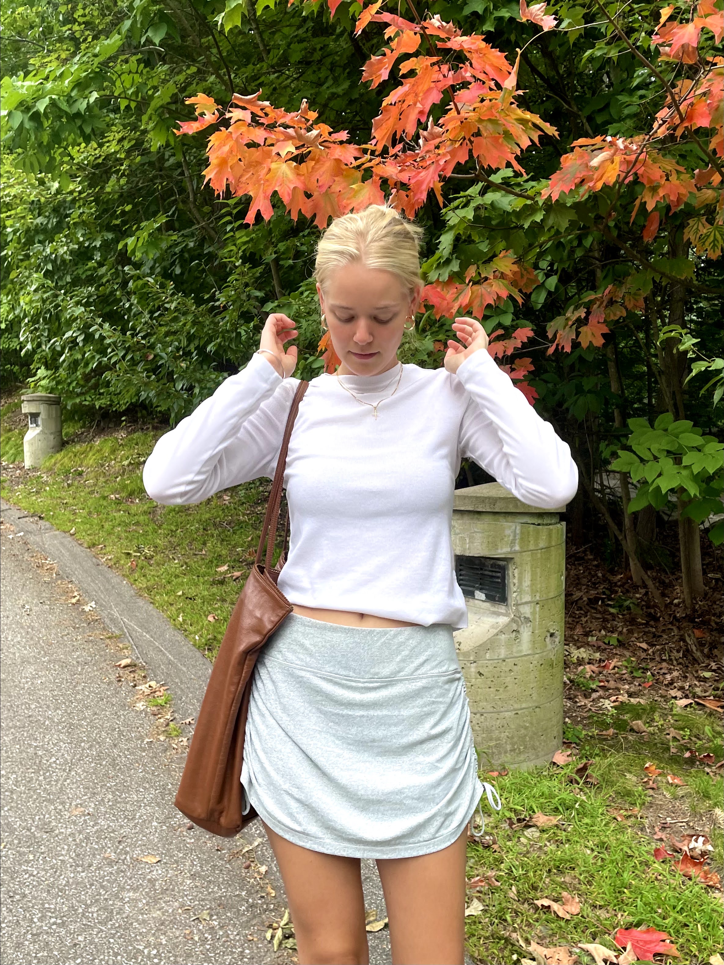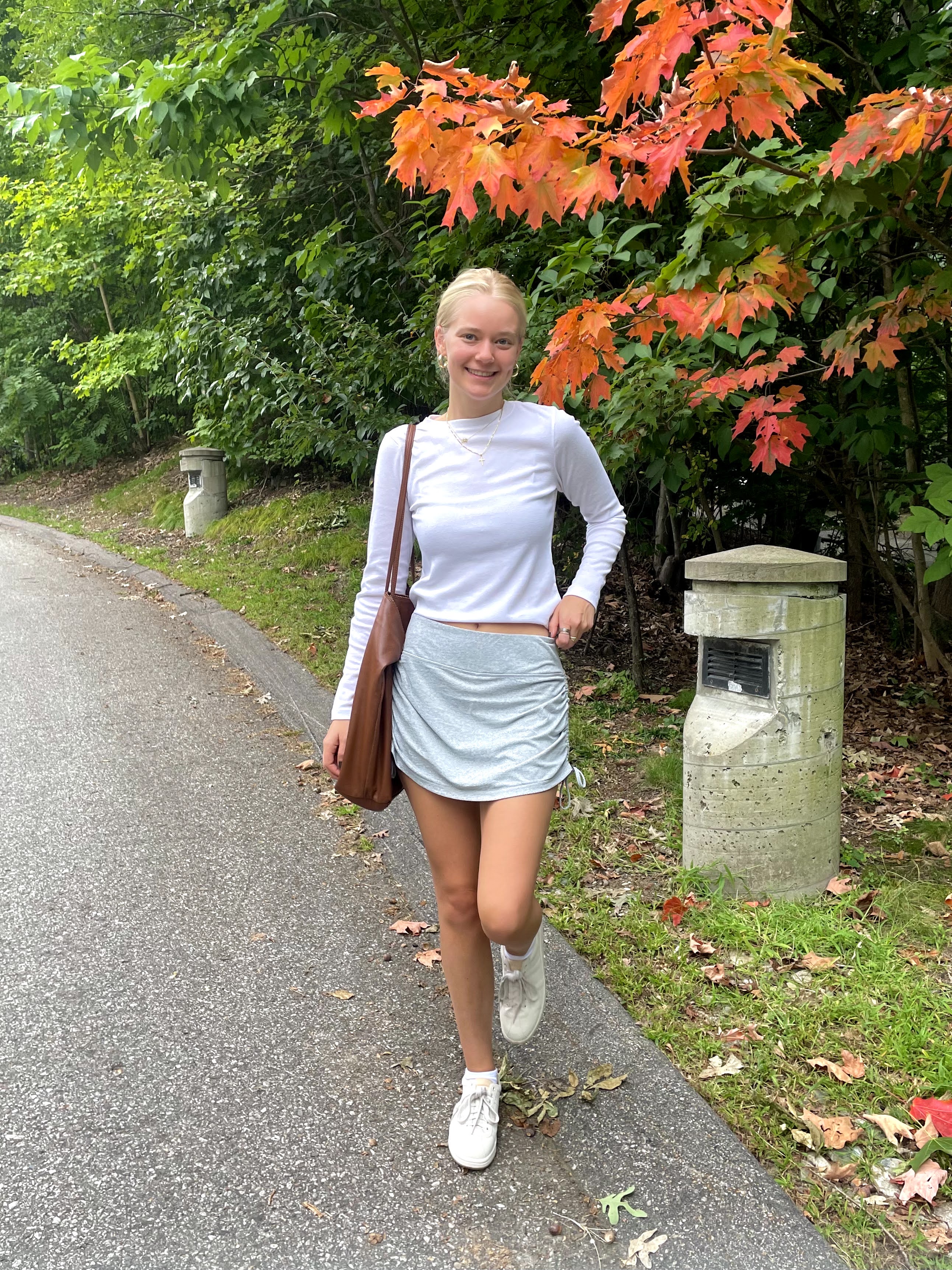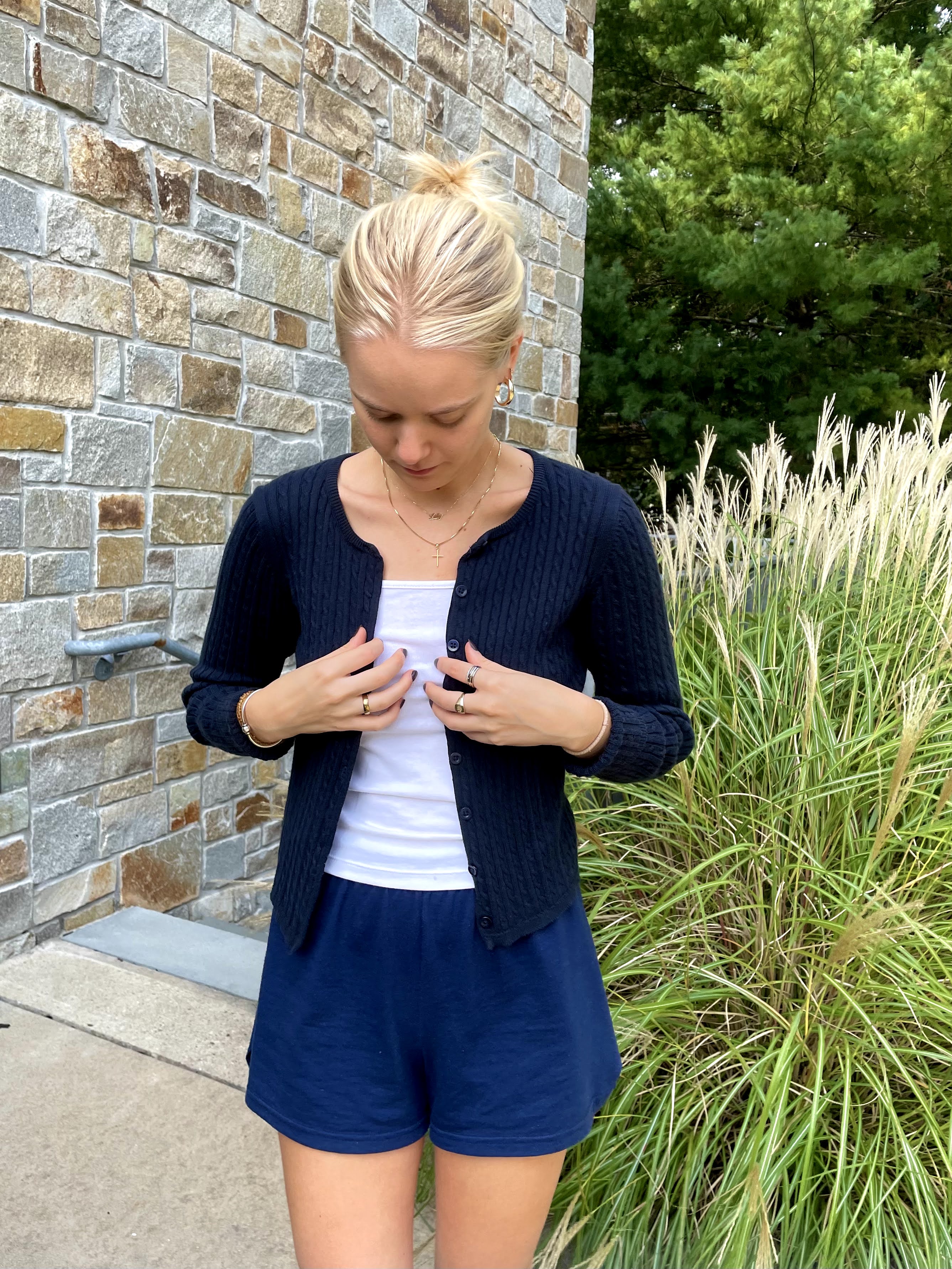 I feel like early Fall is the hardest time to dress for because of the cool, crisp mornings and then the Summer heat in the afternoon. I love a simple outfit for this time of late Summer and early Fall where you can add a layering piece like a button down or a cardigan but still have the basic outfit that you could wear without the layering piece in the heat. Tennis skirts, open button downs, light cardigans, and neutral basics are my favorite outfit essentials lately, as you can see from my photos below.