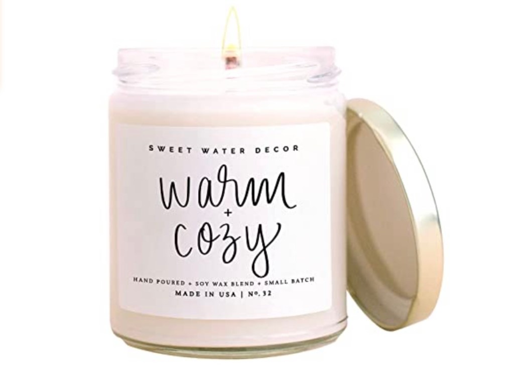 I linked an amazon link above for cozy winter candles but TJMAXX, Marshall’s, Yankee Candle, and so many other shops big or small have abundances of holiday candles this time of year.