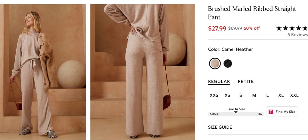 I live in loungewear most of the time and this set from Banana Republic is adorable! and on sale (top and bottom sold separately) 🙂 I think the black heather is my favorite but this neutral is a staple color as well.