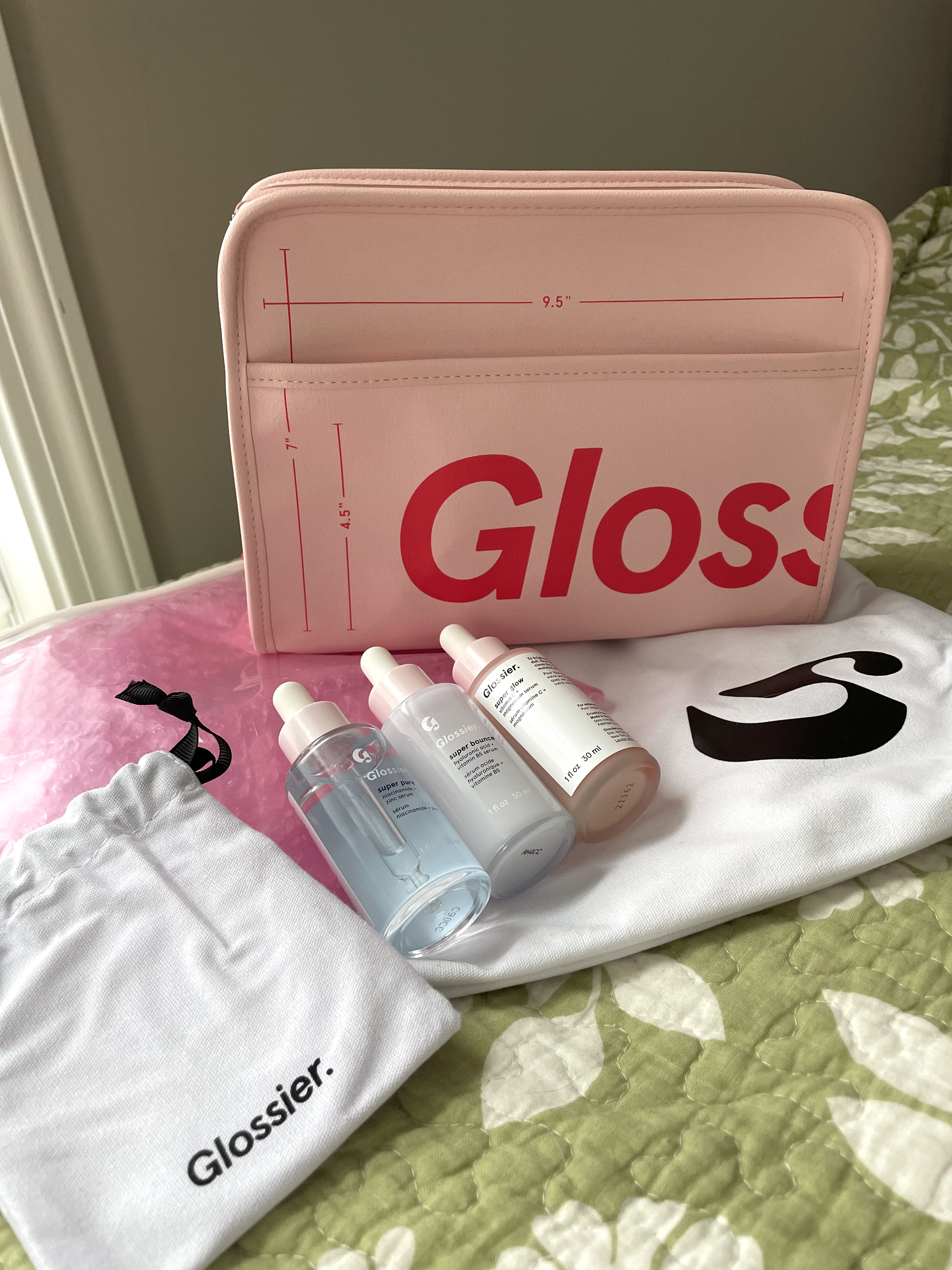 Another fun product was this beauty bag! It’s Glossier’s basic product bag and it is perfect for fitting all of my skincare, perfume, and other daily products in it. Perfect shape and size for packing too.