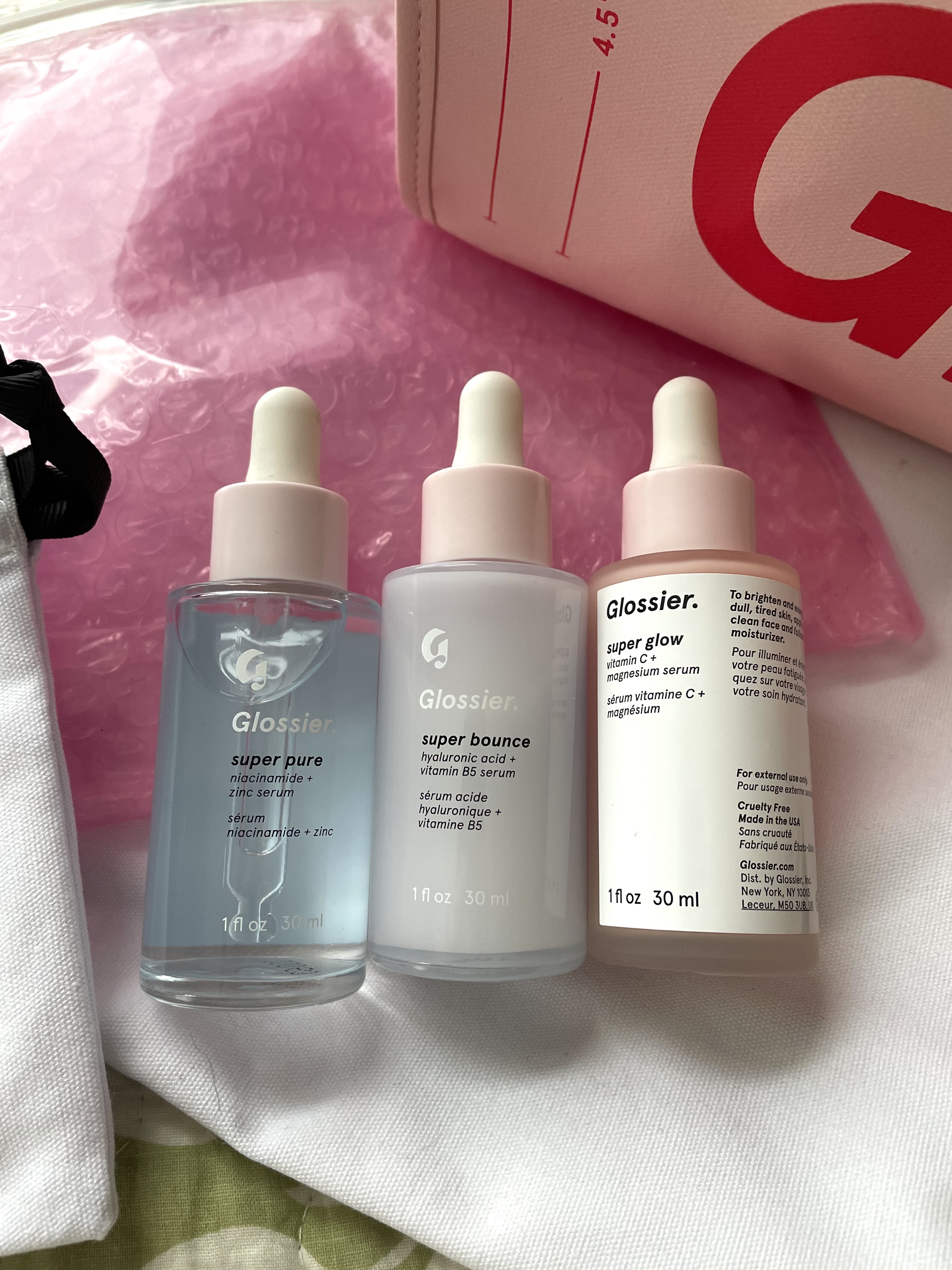 As i noted in my previous skincare post, i was gifted a Super Glow serum a few months ago from Glossier and i truly think it’s changed my skin since using it daily. This Christmas brought a few more serums: the Super Pure and the Super Bounce. While i use the Super Glow in the morning before my daily moisturizer, i’ve found that i like to use these two new serums at nighttime and then following them up with my daily moisturizer.